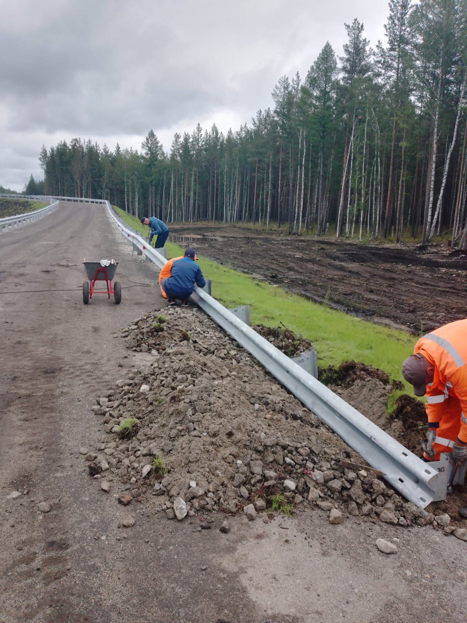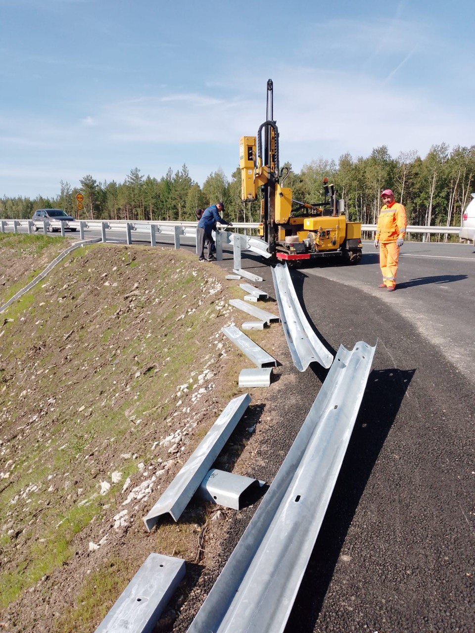 Выполнили монтаж оцинкованного барьерного ограждения с удерживающей способностью 190 кДж и 250 кДж на участке автомобильной дороги г. Екатеринбург - г. Реж - г. Алапаевск.